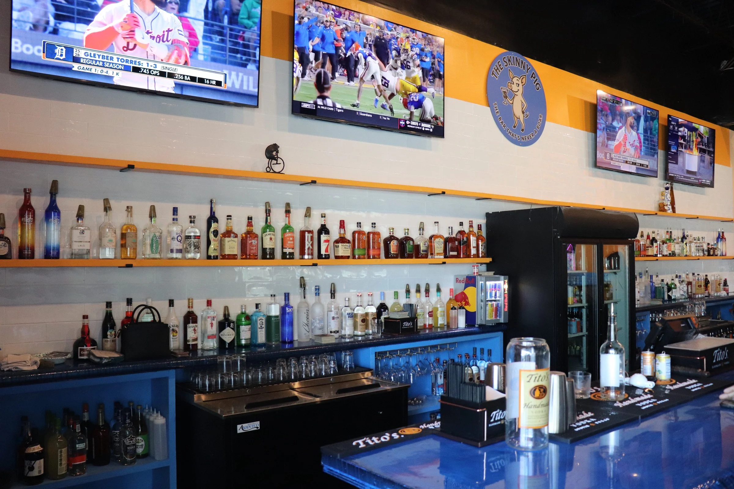 At The Skinny Pig, we don’t just bring home the bacon, we serve it with style. Our bar is a place where friends come to hog the spotlight, sip on swine-spired cocktails, and pig out on good vibes. We believe life’s too short to live high on the hog, so we’ve created a space that’s equal parts laid-back and full of squeals of delight. Whether you’re here to root around for a craft drink, huddle with your herd, or simply enjoy a night that’s anything but boar-ing, The Skinny Pig is your stylish destination. Our mission? To raise the bar while keeping it pig-perfect, where every night is a reason to pig out on fun.